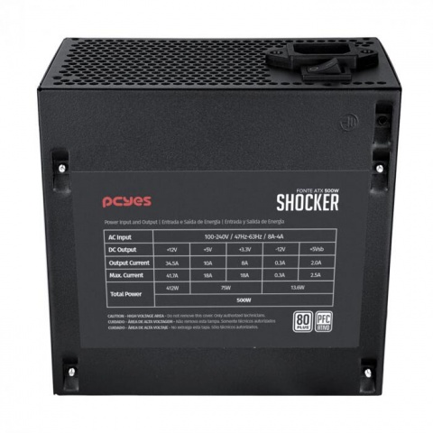Certificação 80Plus Standard, eficiência: >80%, PFC ativo