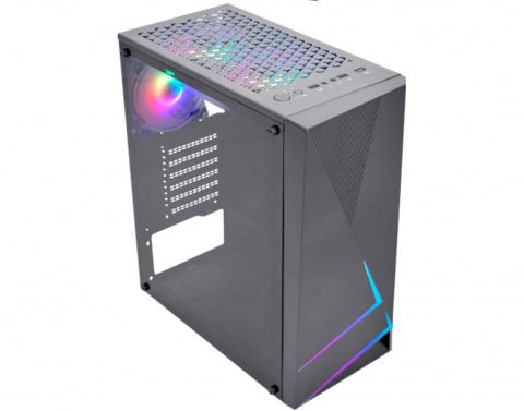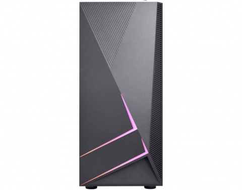 Painel preto com grade de ventilação e barra de LED RGB