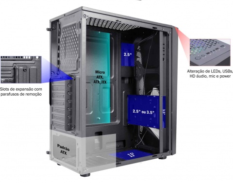 Placa mãe compatível: ATX, MICRO ATX, ITX.