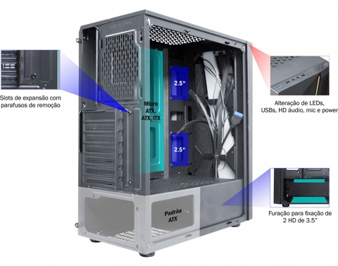 Placa mãe compatível: ATX, MICRO ATX , ITX.