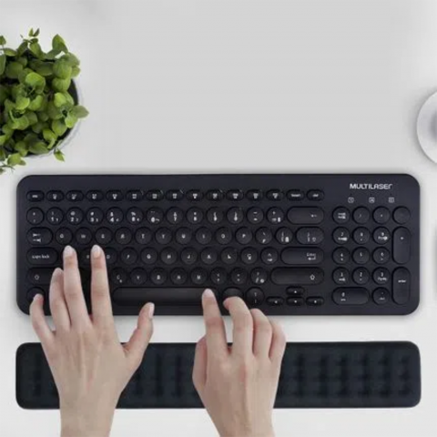 O apoio de pulso em gel possui superfície com furos para massagem e altura ideal para evitar lesões nos pulsos. Além de reduzir a tensão nas mãos, conta com base antiaderente.