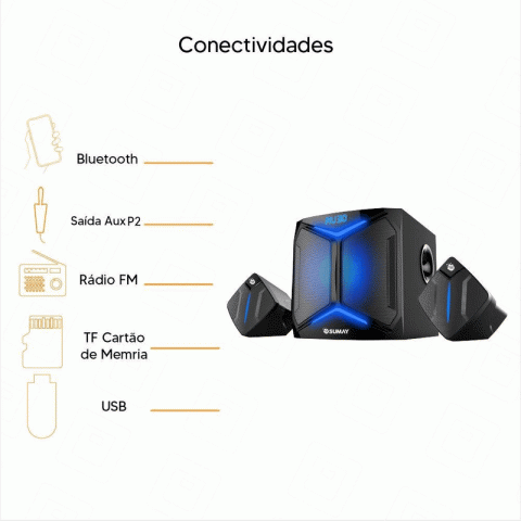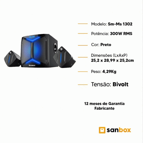 Transforme sua experiência de áudio com o Mini System 2.1 SM-MS1302 da Sumay. Este sistema de som foi projetado para oferecer uma performance sonora impressionante em um design compacto e moderno.