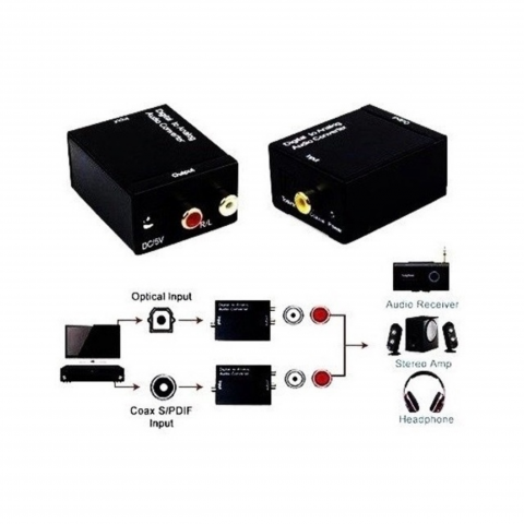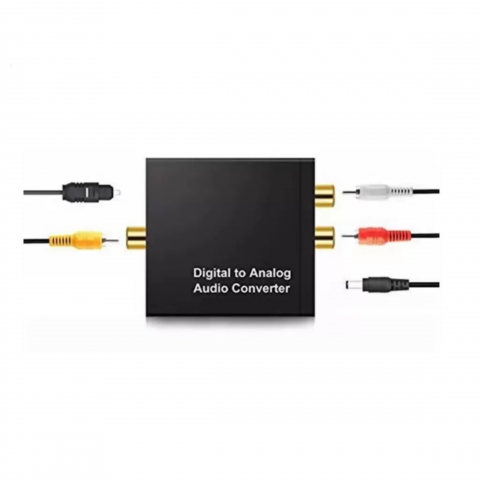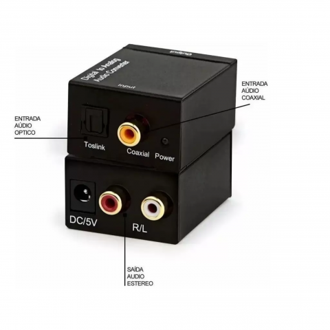 Conversor Ótico de áudio, transforma uma conexão digital em saída analógica (RCA). Isso permite a conversão entre os mais comuns formatos de áudio digital, incluindo som surround 5.1 canais.