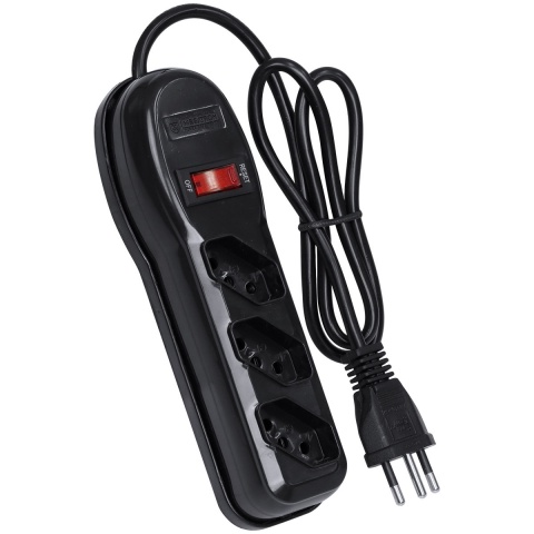 Possui também botão ON/OFF e conectores com o padrão brasileiro de três pinos, de acordo com a norma NBR 14136.
