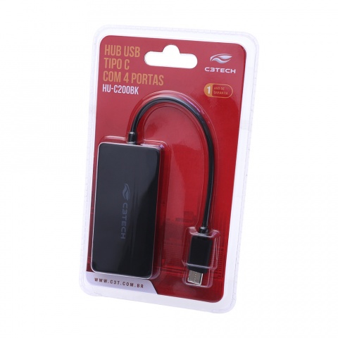 O hub HU-C200 da C3TECH tem utilização simples e fácil para atender todos os dispositivos lançados recentemente. Este hub permite a extensão da saída tipo C para até 4 portas com USB 2.0. Plug and Play, para conectar e usar.