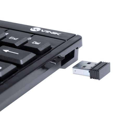 OBS: O Adaptador Wireless é encontrado dentro do mouse ou na lateral superior direito do teclado (próximo ao logo da Vinik)