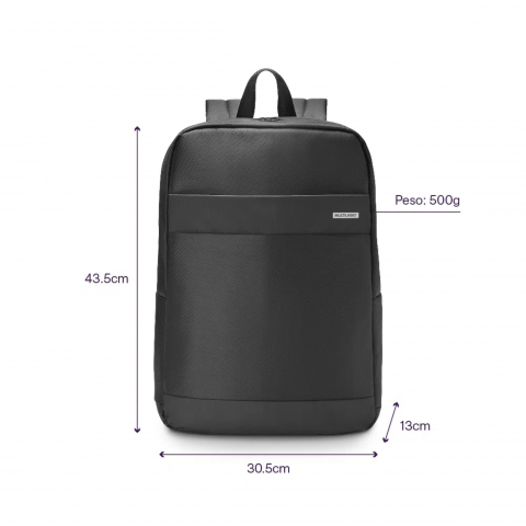 Feita em poliéster resistente e material sintético, com design elegante. Conta com compartimento acolchoado para notebooks até 15,6", além de bolsos laterais e bolso frontal para acessórios.