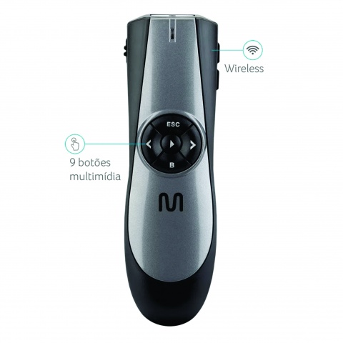 Com tecnologia Plug e Play 2.4Ghz, conecte a entrada USB e comece a usar. Possui um ponto de luz vermelho com alcance de 20m, 5 botões para controle da apresentação.