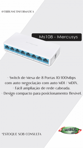 Oito portas RJ45 de 10/100Mbps com auto-negociação com auto MDI / MDIX