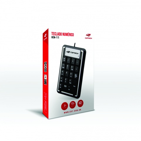 O teclado numérico KN-11 e ideal para quem busca uma solução simples e rápida, para facilitar a digitação no seu dia a dia. Leve e pratico, ele possui teclas de membrana de boa pegada e duráveis, para usos prolongados. KN-11 e também Plug and Play, sem precisar de qualquer driver ou configuração; basta conectar via porta USB, e estará totalmente funcional.