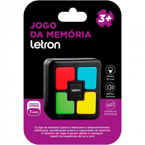 Com 5 Níveis de dificuldade, onde o objetivo é repetir as sequencias de luz e som. Por isso, ele é um brinquedo educativo que propicia o desenvolvimento intelectual utilizando a memoria e a coordenação motora, numa divertida experiência que estimula a memoria, as habilidades e a capacidade cognitiva das crianças, sendo um alegre método de aprendizagem.