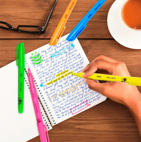 Além de todas essas vantagens, o marca texto Keep não borra e não mancha o verso de suas folhas.