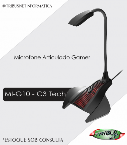 C3TECH MI-G10BK e o companheiro de confianca para quem esta comecando sua jornada no mundo gamer. E um microfone de condensador eletrico de boa qualidade, com captacao omnidirecional em 360°, assegurando estabilidade em sau voz. Design simples, base segura e haste ajustavel, alem de protecao com ABS resistente na ponta do microfone.