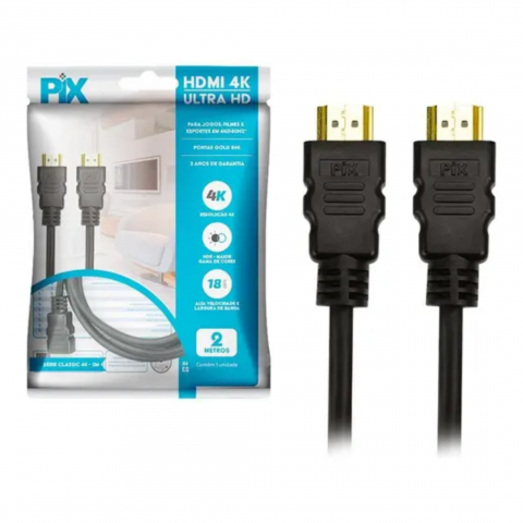 Cabo HDMI PIX 2m 2.0 4K 19 Pinos 018-2222