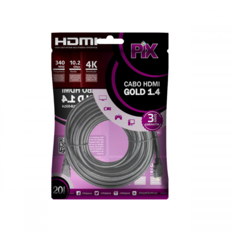 Os Cabos HDMI PIX atingem a resolução 4K em 3D e estão disponível em diversas metragens com embalagem polybag, resistente e prática para exposição do produto.